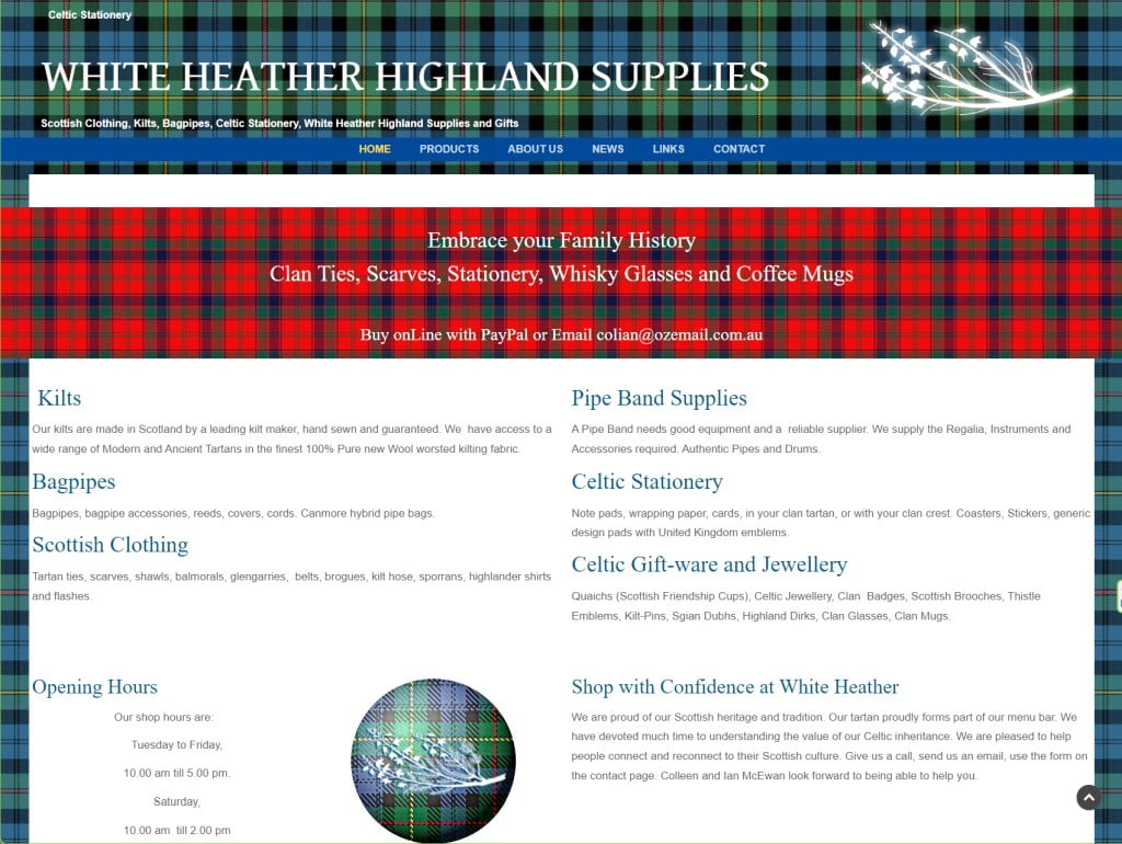 The White Heather or Celtic Stationery site has grown and developed over the years. For some time it was a simple billboard website, and then it became more of a product display site.