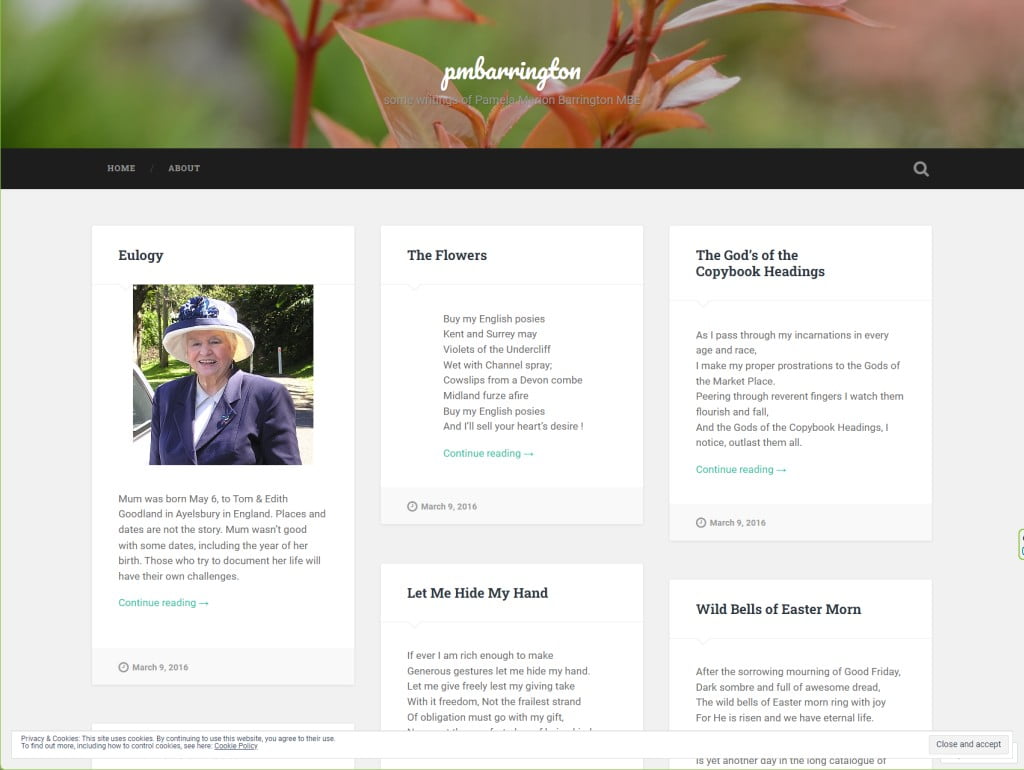 On the other hand, it is a classic example of good use of WordPress.com. That means aside from time, this site has cost me $0.00 to set up and maintain, and the hosting cost remains at $0.00. In reality, it is a good use, for there is nothing complex, but for those who knew my mother, here is an insight into the person they knew in part.